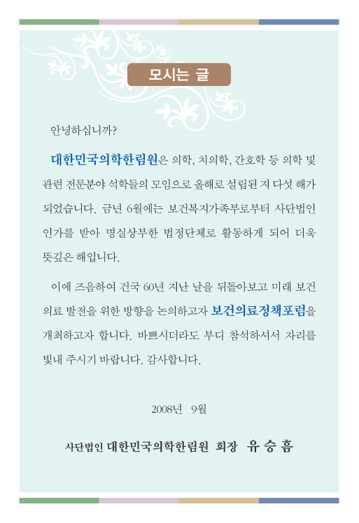 [´ëÇѹα¹ÀÇÇÐÇѸ²¿ø]Á¦1ȸ º¸°ÇÀÇ·áÁ¤Ã¥Æ÷·³
