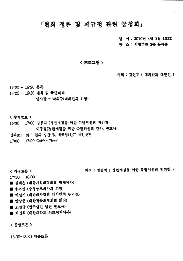 [´ëÇÑÀÇ»çÇùȸ]'Á¤°ü ¹× Á¦±ÔÁ¤ °³Á¤(¾È)' °ü·Ã °øÃ»È¸ °³ÃÖ