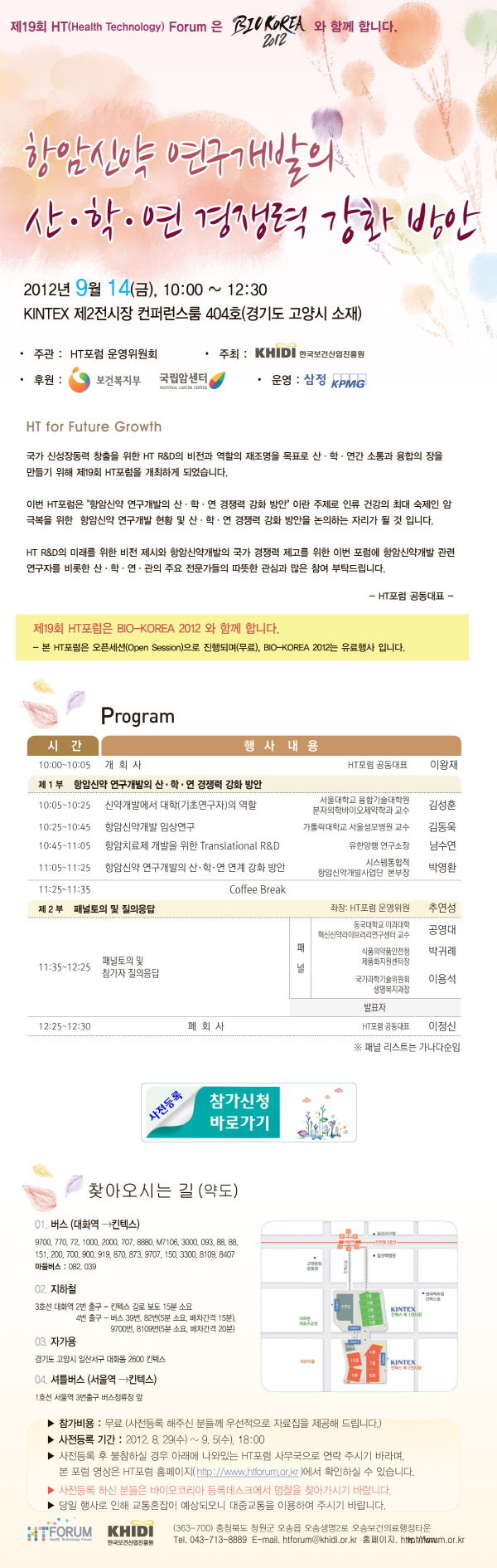 Á¦19ȸ HT(Health Technology) Forum - Ç×¾Ï½Å¾à ¿¬±¸°³¹ßÀÇ »êÇп¬ °æÀï·Â °È ¹æ¾È
