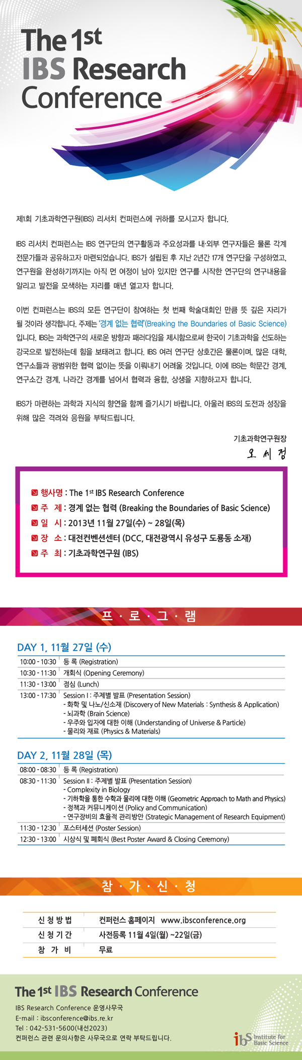[±âÃʰúÇבּ¸¿ø]Á¦1ȸ IBS Research Conference °³ÃÖ