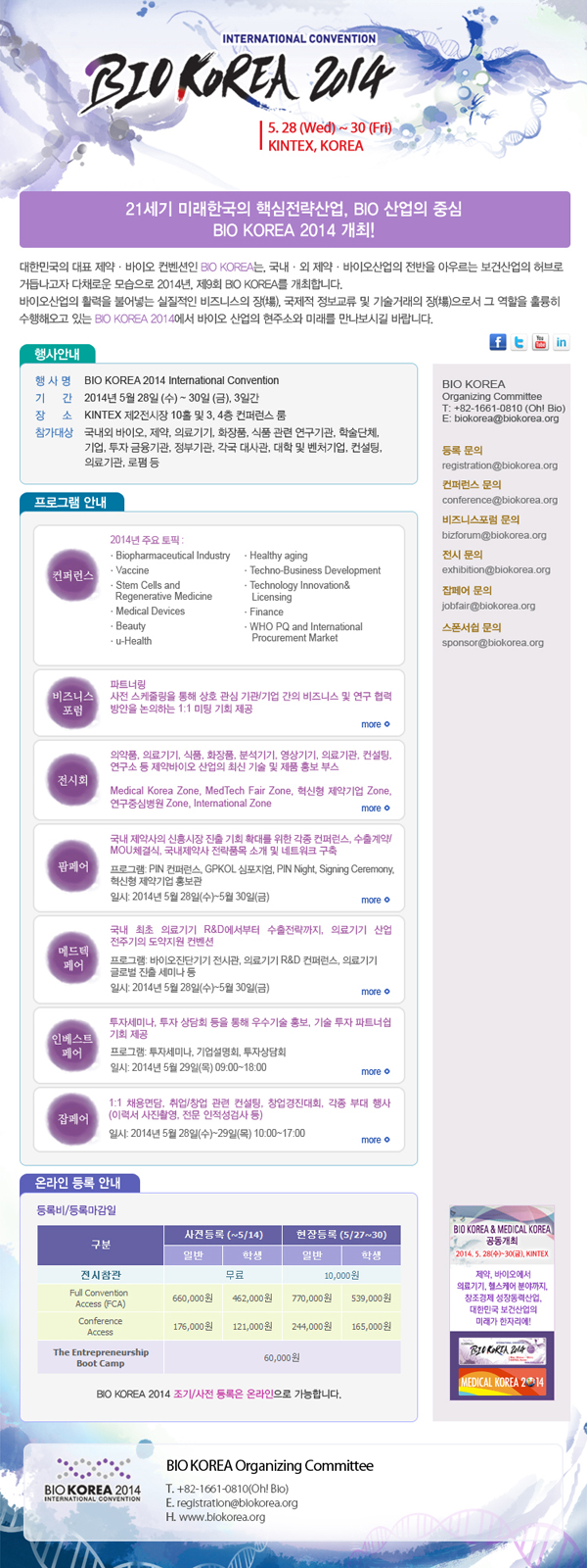 [Çѱ¹º¸°Ç»ê¾÷ÁøÈï¿ø]BIO KOREA 2014 °³ÃÖ ¾È³»