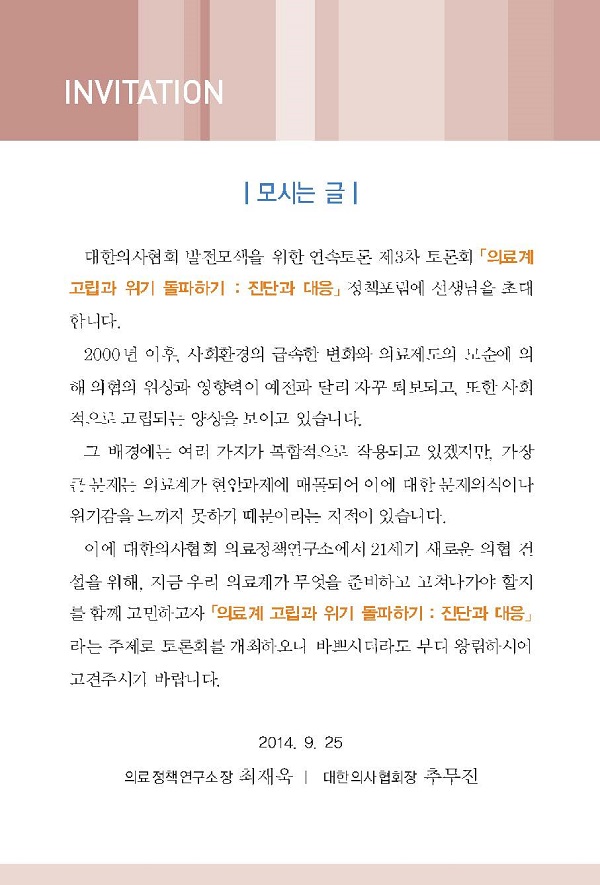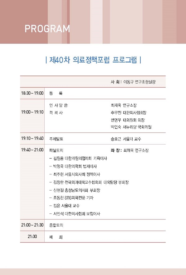[´ëÇÑÀÇ»çÇùȸ] Á¦40Â÷ ÀÇ·áÁ¤Ã¥Æ÷·³ - ´ëÇÑÀÇ»çÇùȸ ¹ßÀü¸ð»öÀ» À§ÇÑ ¿¬¼ÓÅä·Ð Á¦3Â÷ Åä·Ðȸ