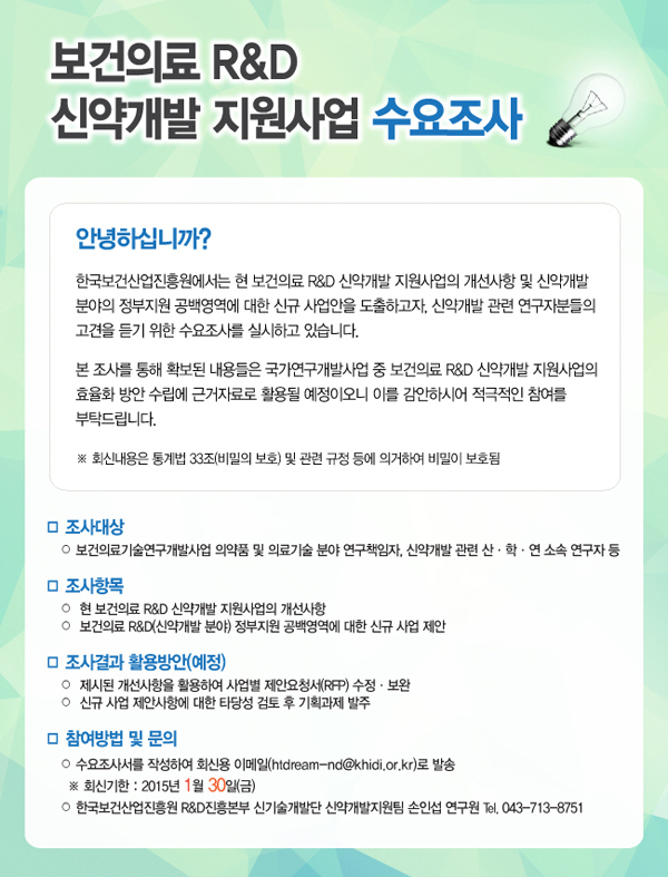 [Çѱ¹º¸°Ç»ê¾÷ÁøÈï¿ø]º¸°ÇÀÇ·á R&D ½Å¾à°³¹ß Áö¿ø»ç¾÷ ¼ö¿äÁ¶»ç ¾È³»