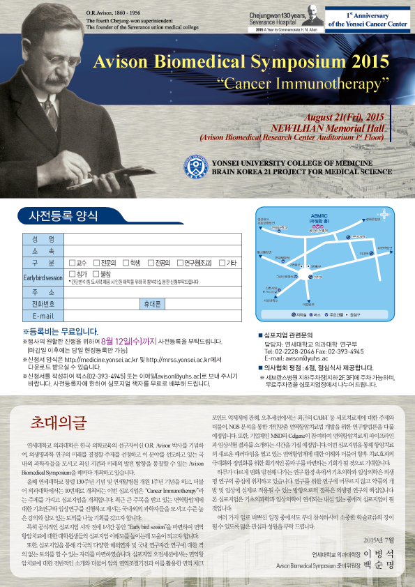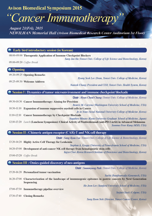 [¿¬¼¼ÀÇ´ë] Avison Biomedical Symposium 2015 "Cancer Immunotherapy" °³ÃÖ ¾È³»