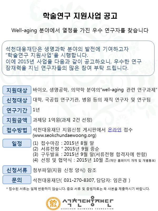 [¼®Ãµ´ë¿õÀç´Ü] Çмú¿¬±¸ Áö¿ø»ç¾÷ °ø°í