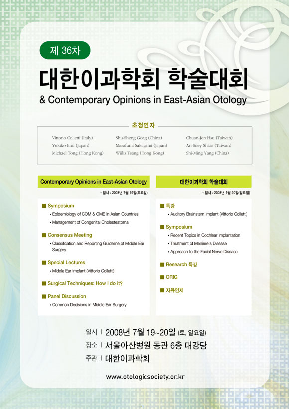 [´ëÇÑÀ̰úÇÐȸ]Á¦36Â÷ Çмú´ëȸ ¹× Contemporary Opinions in East-Asian Otology